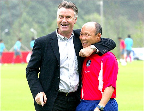 HLV Guus Hiddink và ông Park Hang Seo ở World Cup 2002.