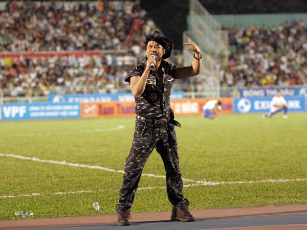 Sân Thống Nhất từng vỡ sân khi ca sỹ Ngọc Sơn xuất hiện biểu diễn trước mỗi trận đấu.