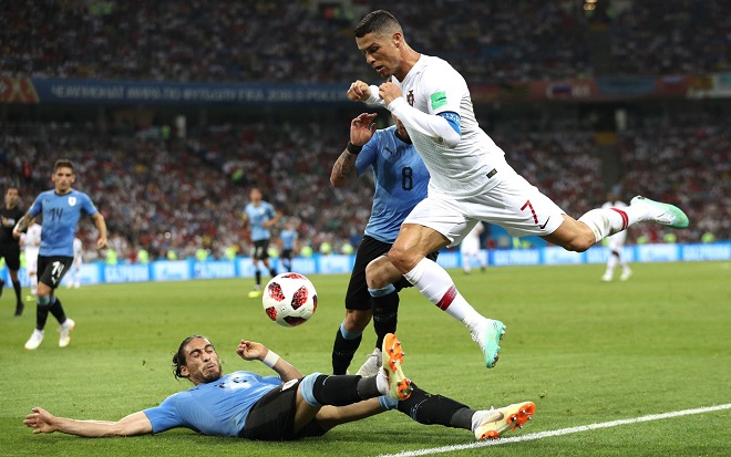 Cũng với một kịch bản tương tự như Messi, Ronaldo “mất tích” trong suốt cả trận đấu trước một ĐT Uruguay có một hàng phòng ngự cực kỳ chắc chắn cùng một tập thể vô cùng kỷ luật. Ngôi sao Real Madrid bị vô hiệu hóa hoàn toàn khiến nguồn sống của ĐT Bồ Đào Nha gần như không còn. Ronaldo bất lực trước khung thành Uruguay một cách đáng thương.