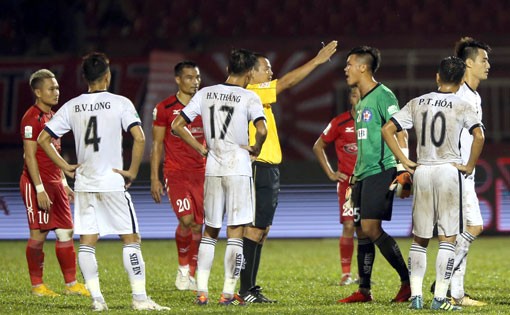 Trận đấu giữa TP.HCM và Đà Nẵng diễn ra trong cảnh phản ứng trọng tài. Ảnh: VPF