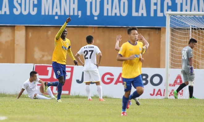 Thế nhưng, đội bóng xứ Thanh cũng chẳng phải chờ đợi lâu. Chỉ 2 phút sau, Trọng Hoàng đá phạt góc thuận lợi tạo điều kiện cho Omar bật cao đánh đầu tung lưới thủ thành Phan Đình Vũ Hải nâng tỉ số lên 2-0. Bàn thắng này khiến các cầu thủ SLNA gần như buông xuôi.