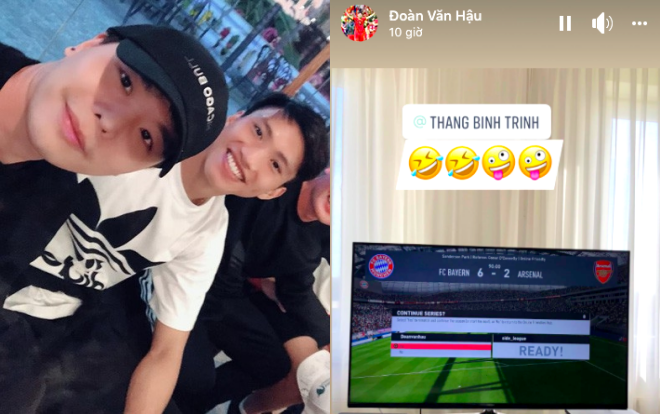 Ngoài tài năng trên sân cỏ, Văn Hậu cũng chứng minh mình là một game thủ thiện chiến, có trình độ đá PES khá tốt. Qua những hình ảnh được chia sẻ trên trang cá nhân có thể thấy, Văn Hậu đã giành chiến thắng đậm đà 6-2 trước Trịnh Thăng Bình. Hậu vệ tuyển Việt Nam còn thể hiện sự phấn khích khi gắn tên Trịnh Thăng Bình trên story và gắn nhiều nhãn dán mặt cười.