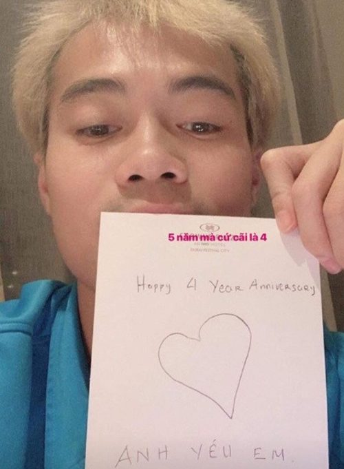 Đáp lại tình yêu của nữ sinh xinh đẹp, Văn Toàn luôn cố gắng dành tất cả thời gian bóng “chết” để chăm sóc Trang Nhung. Sau thông điệp “Đừng buồn nhé TN”, bạn thân Công Phượng tiếp tục công khai cho cả thế giới biết tình yêu không bao giờ đổi thay dành cho cô nàng với story trên instagram: “Anh yêu em. Happy 4 year anniversary”.