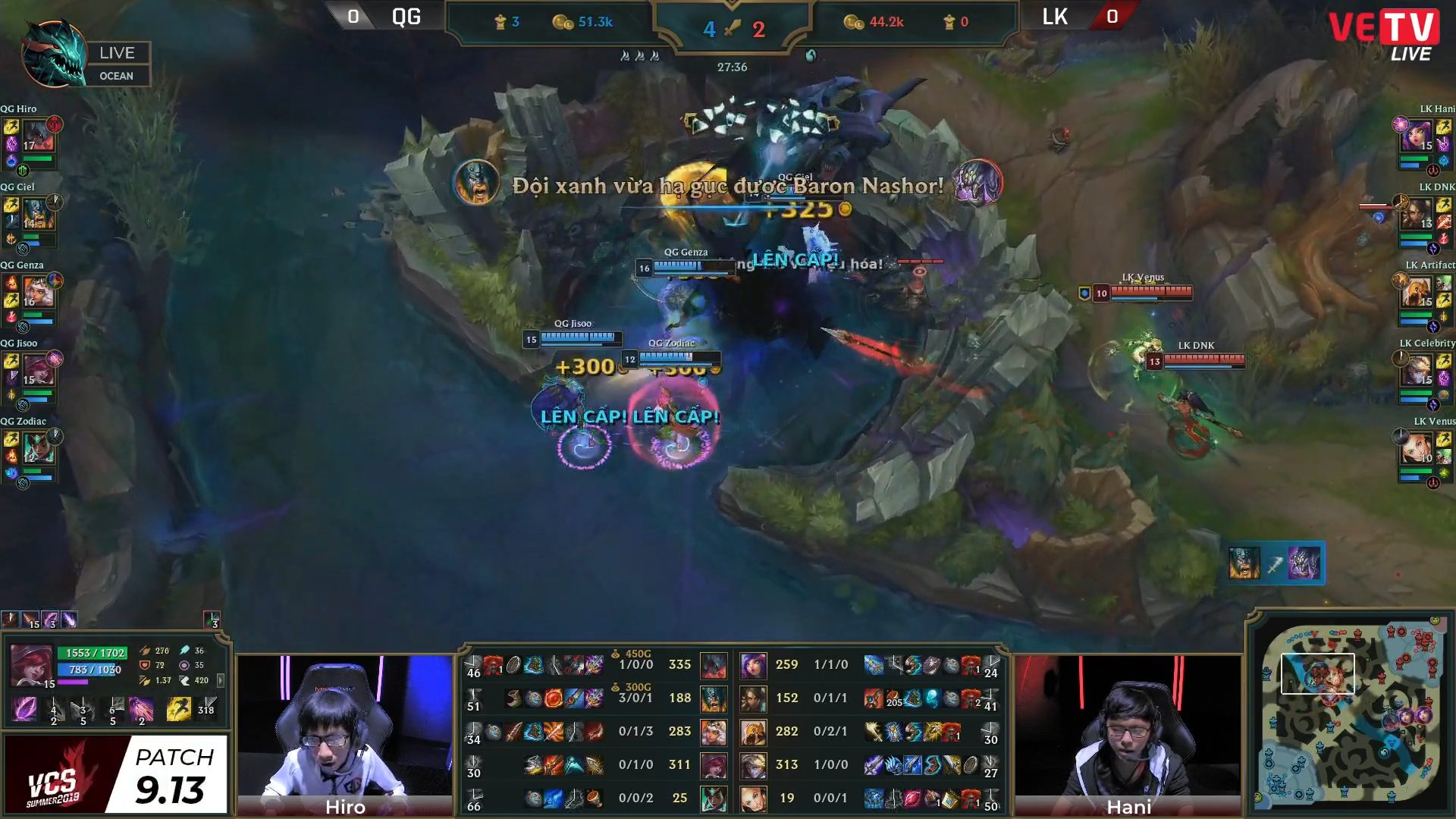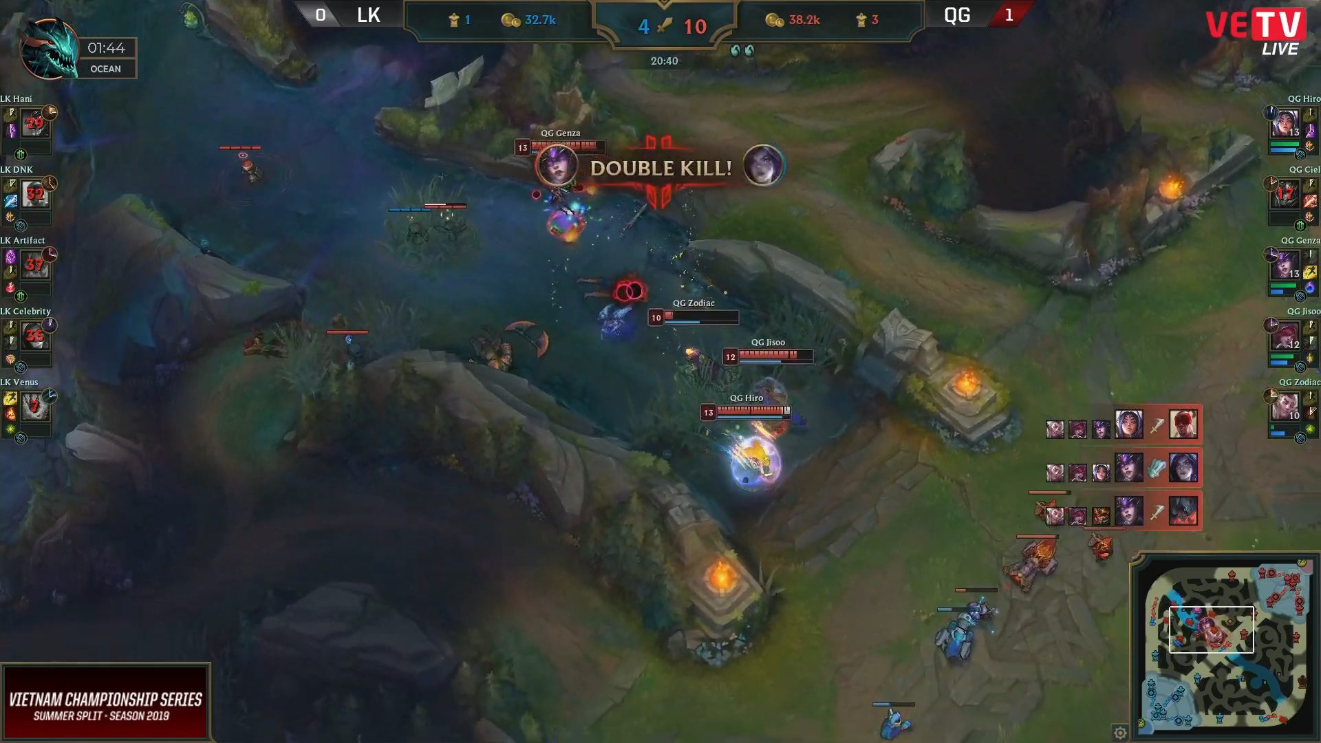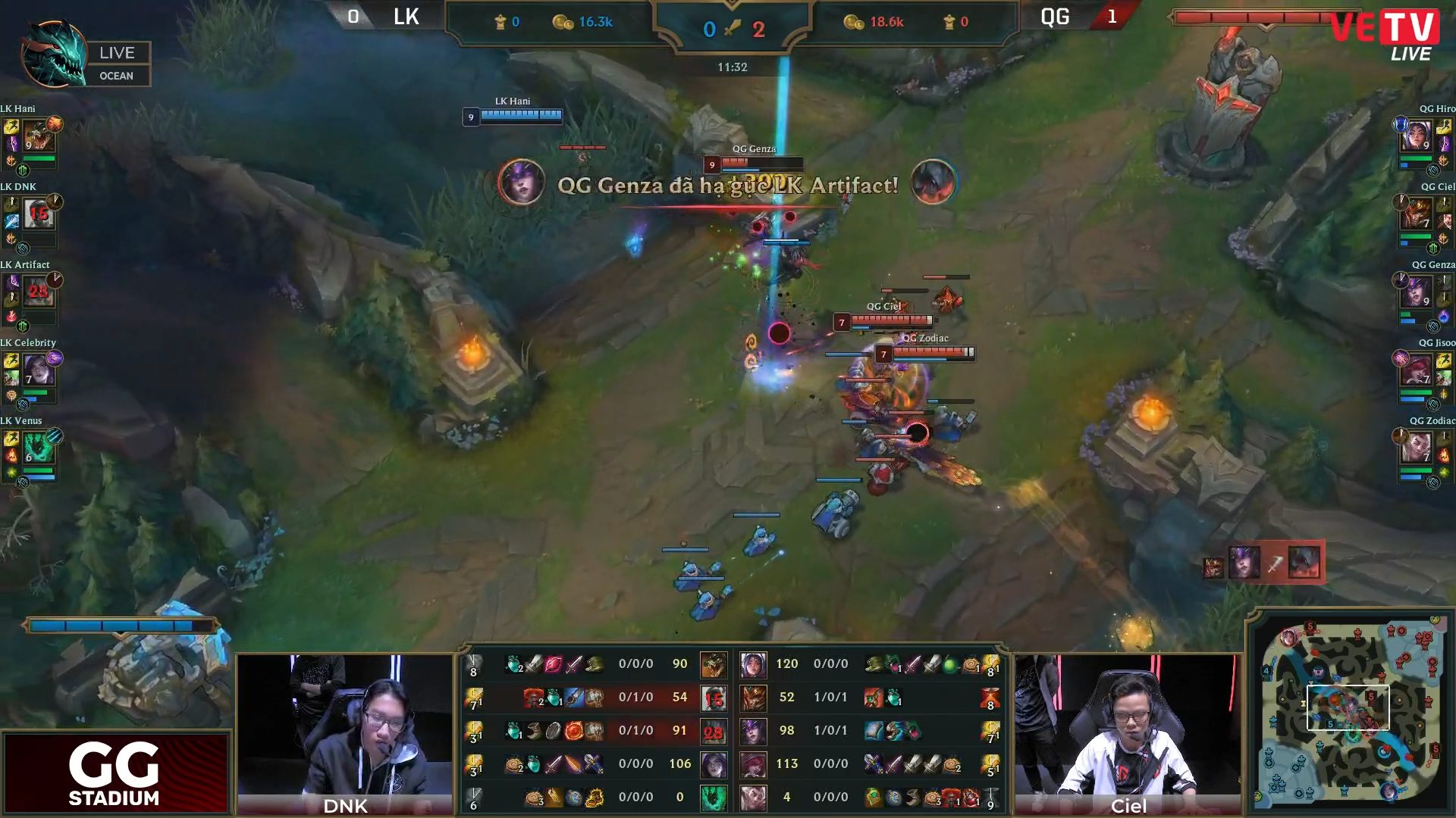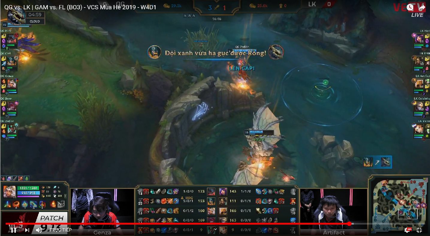 LK Esports ngay sau đó đã có động thái đáp trả khi tổ chức gank 4 người và lấy đi mạng shutdown của Hiro. Nhưng mọi thứ chính thức vuột khỏi tay của LK khi DNK có 1 pha xử lí khá lỗi dẫn đến cả team LK bị quét sạch và kèm theo đó là 1 con Baron khuyến mãi dành cho QG. QG chính thức vượt lên LK với hơn 7k tiền ở phút thứ 22 của trận đấu.