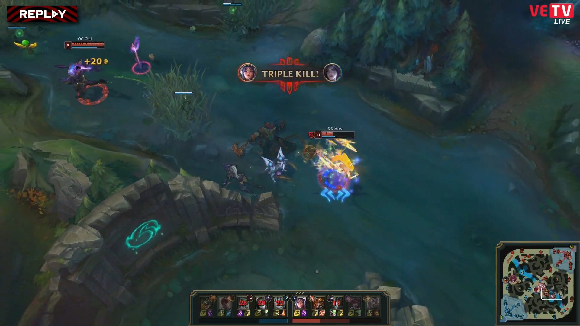 Tuy nhiên, ngay sau đó, LK cho thấy mình không phải là 1 đội tuyển non tay khi tổ chức ngay 1 pha gank 4 người lên khu vực đường trên và giành lại 1 mạng hạ gục của người chơi đường Top Hiro bên phía QG.