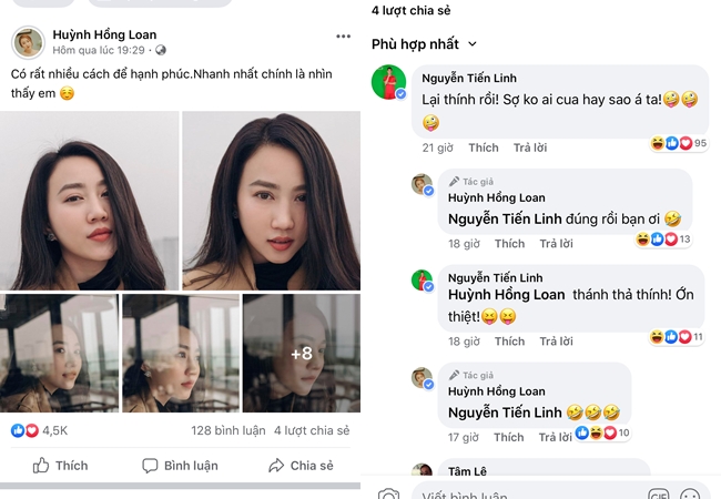 Hiện tại cô và Nguyễn Tiến Linh đã công khai mối quan hệ, cả hai rất thoải mái trong việc thể hiện tình cảm. Anh chàng cầu thủ thương xuyên tương tác rất dễ thương trong từng bài đăng của người yêu. (Ảnh:FBNV)