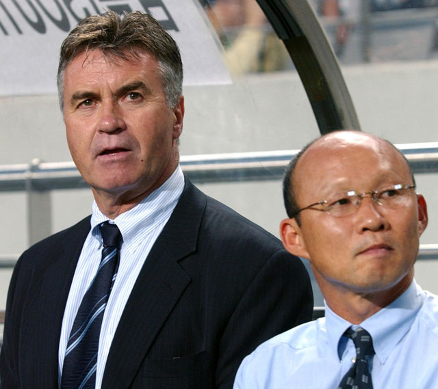 HLV Park Hang Seo (phải) từng làm trợ lý cho Guus Hiddink ở ĐT Hàn Quốc.
