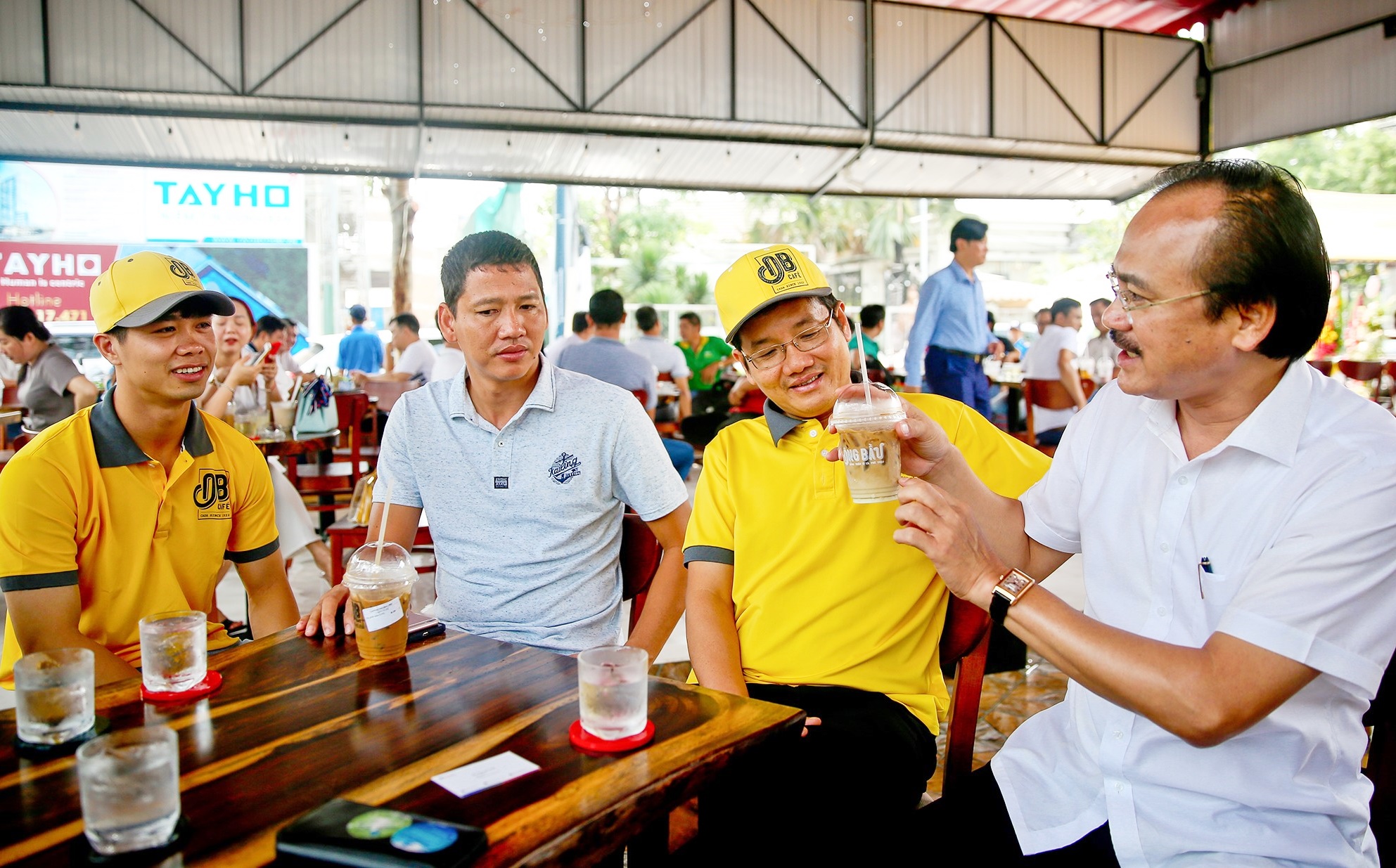 Trước tấm chân tình của mọi người, bầu Thắng nở nụ cười rất vui và tâm sự: “Tôi cảm thấy rất hạnh phúc khi bước vào quán đã thấy hàng trăm người đến ủng hộ. Tôi không nghĩ hôm nay lại có đông đảo mọi người như thế này. Tôi xin cảm ơn tình cảm của mọi người. Đó thực sự là điều đáng trân trọng, cũng là động lực rất lớn cho tôi và anh Đức, anh Hải mang cà phê thật đến cho mọi người.