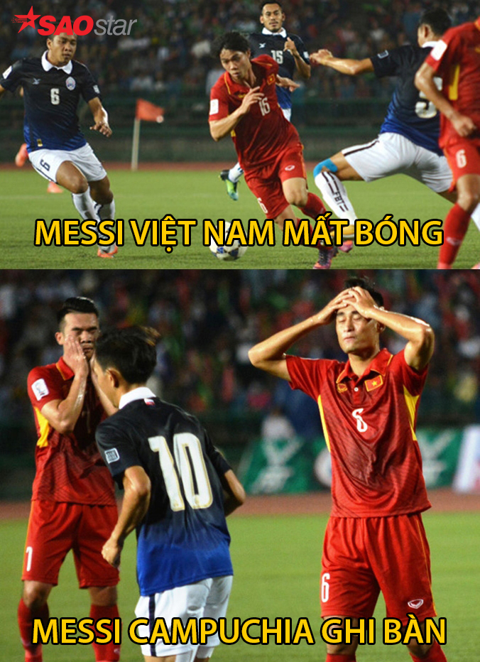 Chính pha đi bóng hỏng của “Messi Việt Nam” Công Phượng là nguyên nhân giúp “Messi Campuchia” Vathanaka ghi bàn ngay sau đó.