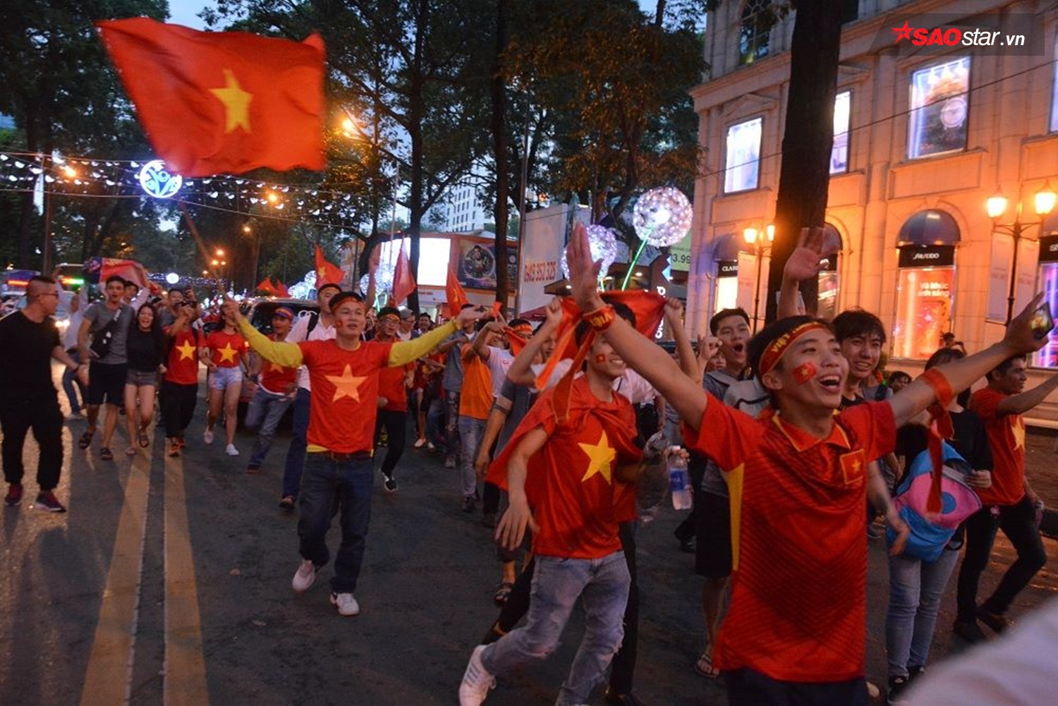 Người dân Sài Gòn đổ ra đường ăn mừng chiến thắng của U23 Việt Nam.