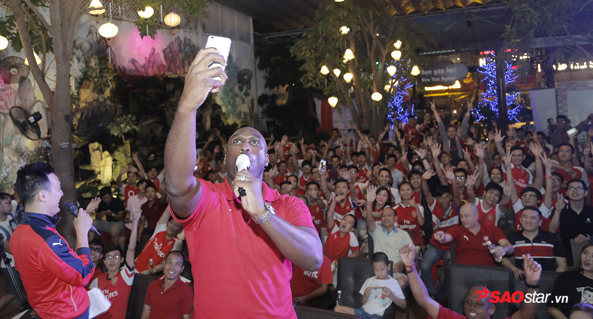 Bất chấp cơn mưa lớn của TP.HCM, chiều tối ngày 18/11, đông đảo các CĐV Arsenal đã tập trung tại một quán cafe ở quận 10 để theo dõi trận đại chiến Bắc London giữa Arsenal và Tottenham. Buổi off có sự tham dự của trung vệ huyền thoại Sol Campbell . Trong ảnh, huyền thoại người Anh hào hứng “tự sướng” cùng các fan.