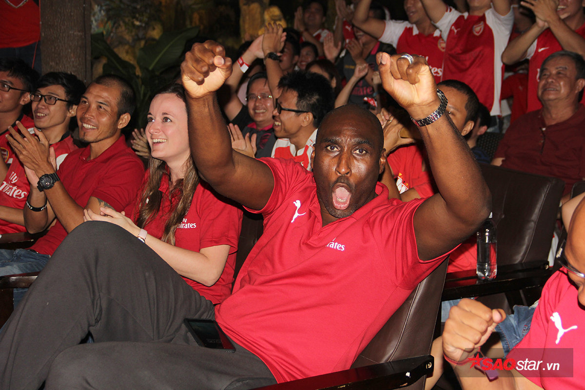Huyền thoại Sol Campbell cũng ăn mừng đầy phấn khích. Trước trận đấu, danh thủ này chỉ dám dự đoán đội nhà có được một kết quả hòa.