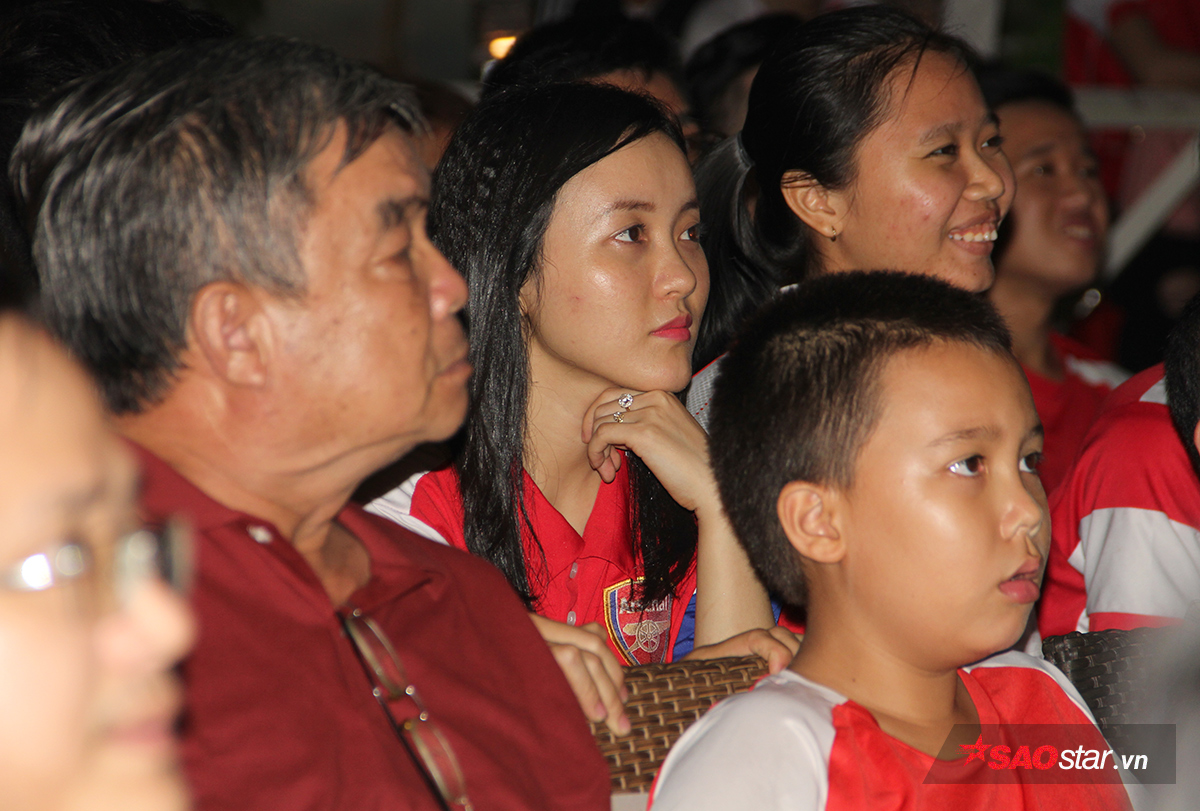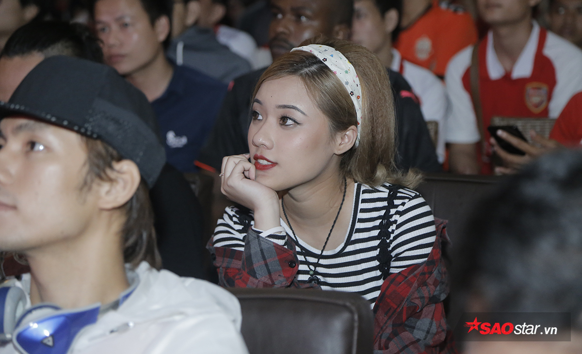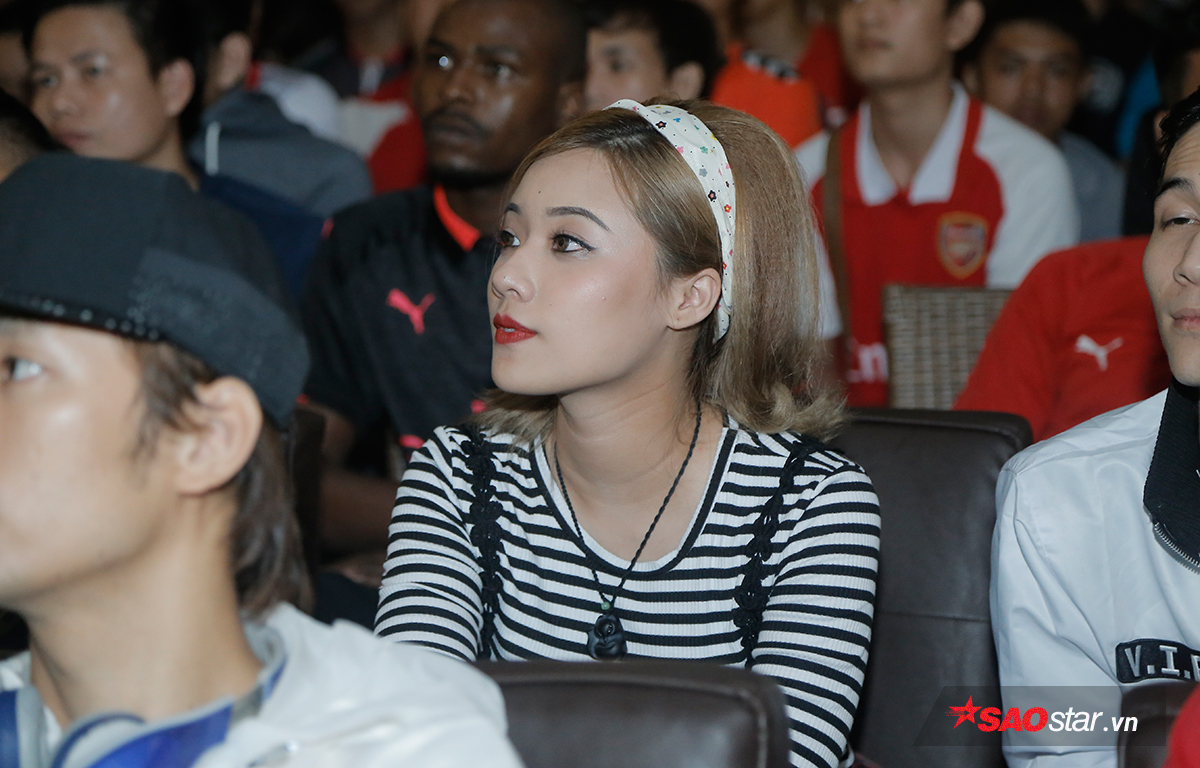 Các fan nữ cũng bị “đốn tin” bởi sự xuất hiện của chàng diễn viên điển trai Nhan Phúc Vinh. Anh cho biết: “Vinh theo dõi Arsenal 17 năm nay rồi. Sang năm còn dự định làm một chuyến qua Anh xem Pháo thủ thi đấu nữa. Bình thường Vinh hay xem ở nhà, hôm nay tự nhiên lại bị cúp điện. Vả lại có Sol Campbell nữa nên Vinh chạy sang xem cùng mọi người cho vui”.