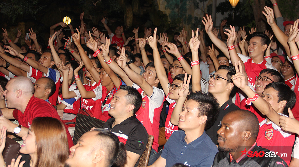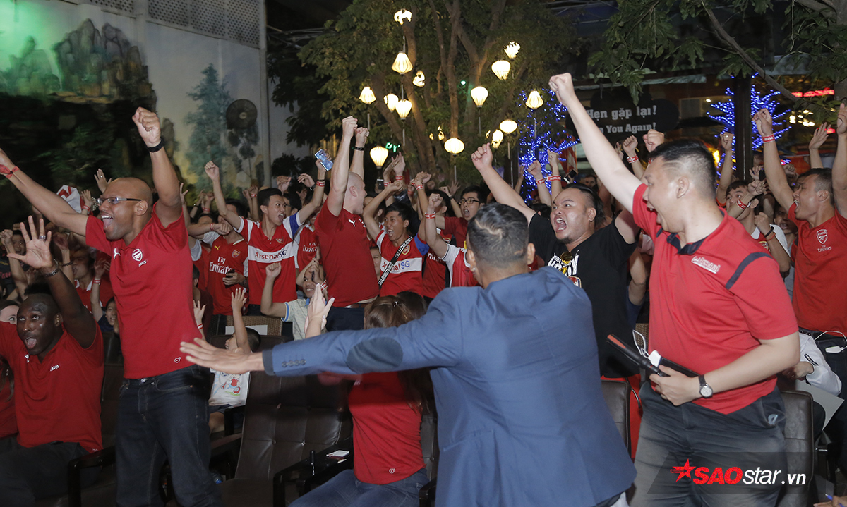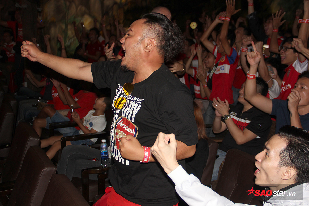 Niềm vui sướng của các CĐV Arsenal tại TP.HCM khi đội nhà có bàn dẫn trước.