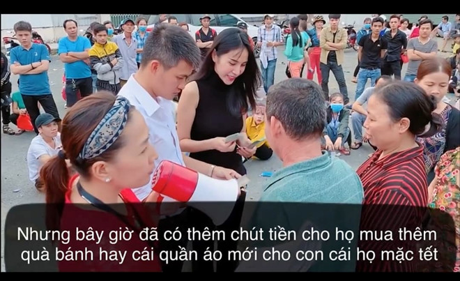 Video vợ chồng nữ ca sĩ Thủy Tiên trao tiền quyên góp cho công nhân ở Bình Dương được dân mạng chia sẻ rầm rộ.