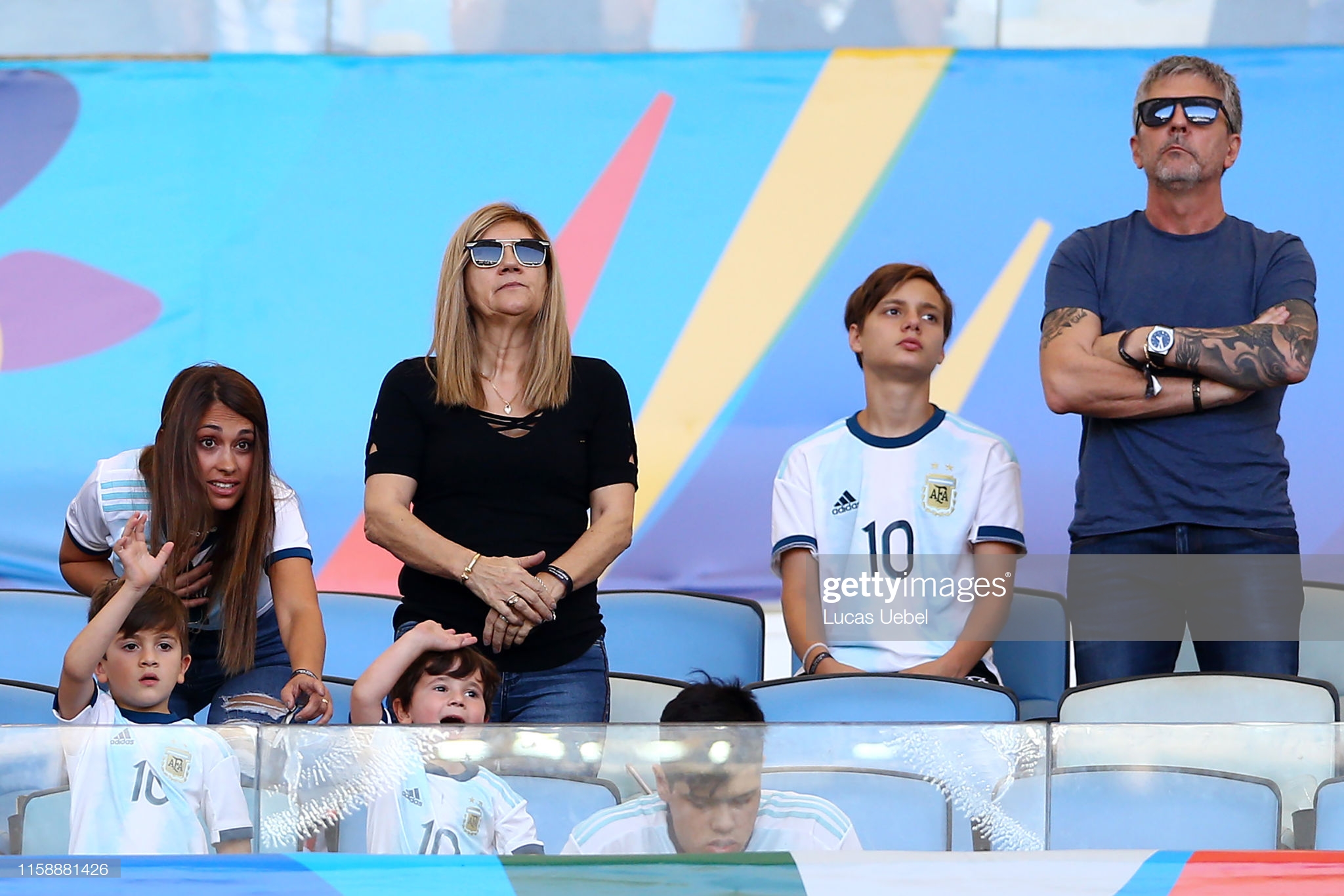 Trong trận thắng nhẹ nhàng 2-0 trước Venezuela cách đây ít giờ, đại gia đình nhà Messi đã gây chú ý khi xuất hiện tại sân Maracana để cổ vũ tinh thần cho tiền đạo mang áo số 10. Ngoài vợ Antonella Roccuzzo cùng 3 con trai, bố Jorge và mẹ Celia Cuccittini của Messi ngồi cạnh nhau trên hàng ghế VIP.