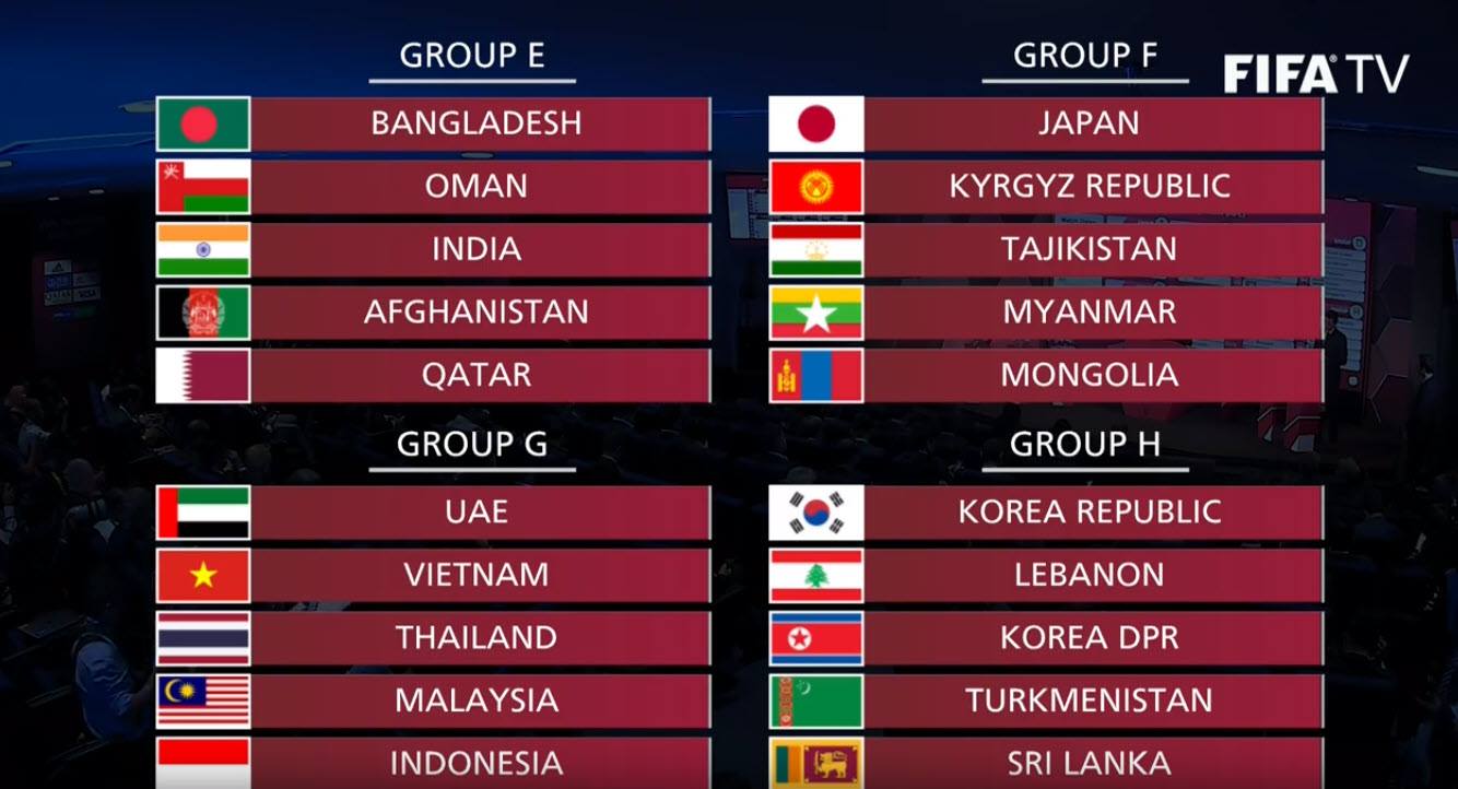 Theo kết quả bốc thăm, ĐT Việt Nam rơi vào bảng G, bảng đấu có đến 3 đại diện ĐNA gồm Malaysia, Indonesia, Thái Lan và một đại diện Tây Á là UAE.