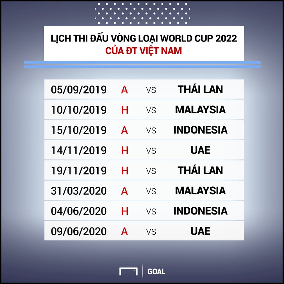 Đội tuyển Việt Nam sẽ chơi 5 trận trong năm 2019 và 3 trận còn lại trong năm 2020. Trên BXH FIFA tháng 6/2019, ĐT Việt Nam đã vượt mặt ĐT Jordan lên hạng 96 thế giới và 15 châu Á. Nhờ đó, ông Park và các học trò sẽ được AFC sắp xếp vào nhóm hạt giống số 2 tại lễ bốc thăm Vòng loại World Cup 2022 khu vực châu Á.