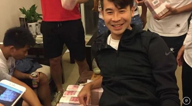 Cầu thủ đội Meixian khoe núi tiền ngay trong phòng thay đồ.