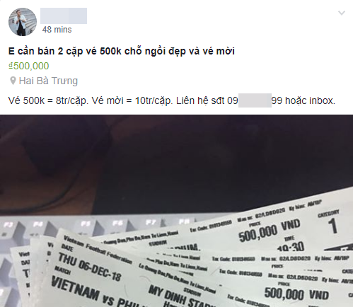 Cũng chính vì thế, giá vé thị trường “chợ đen” trận bán kết lượt về giữa Việt Nam và Philippines đã tăng chóng mặt. Trên trang Facebook, rất nhiều tài khoản đang rao bán vé đội giá từ 8 đến 10 lần so với mệnh giá gốc.
