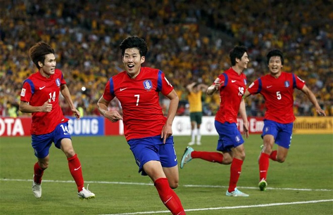 Son Hueng-min cùng các đồng đội thi đấu đầy cố gắng trước U23 Uzbekistan. Ảnh: Dân Việt.