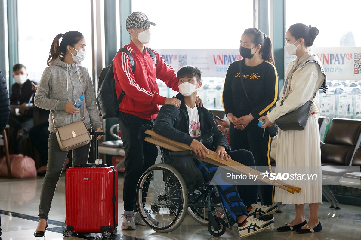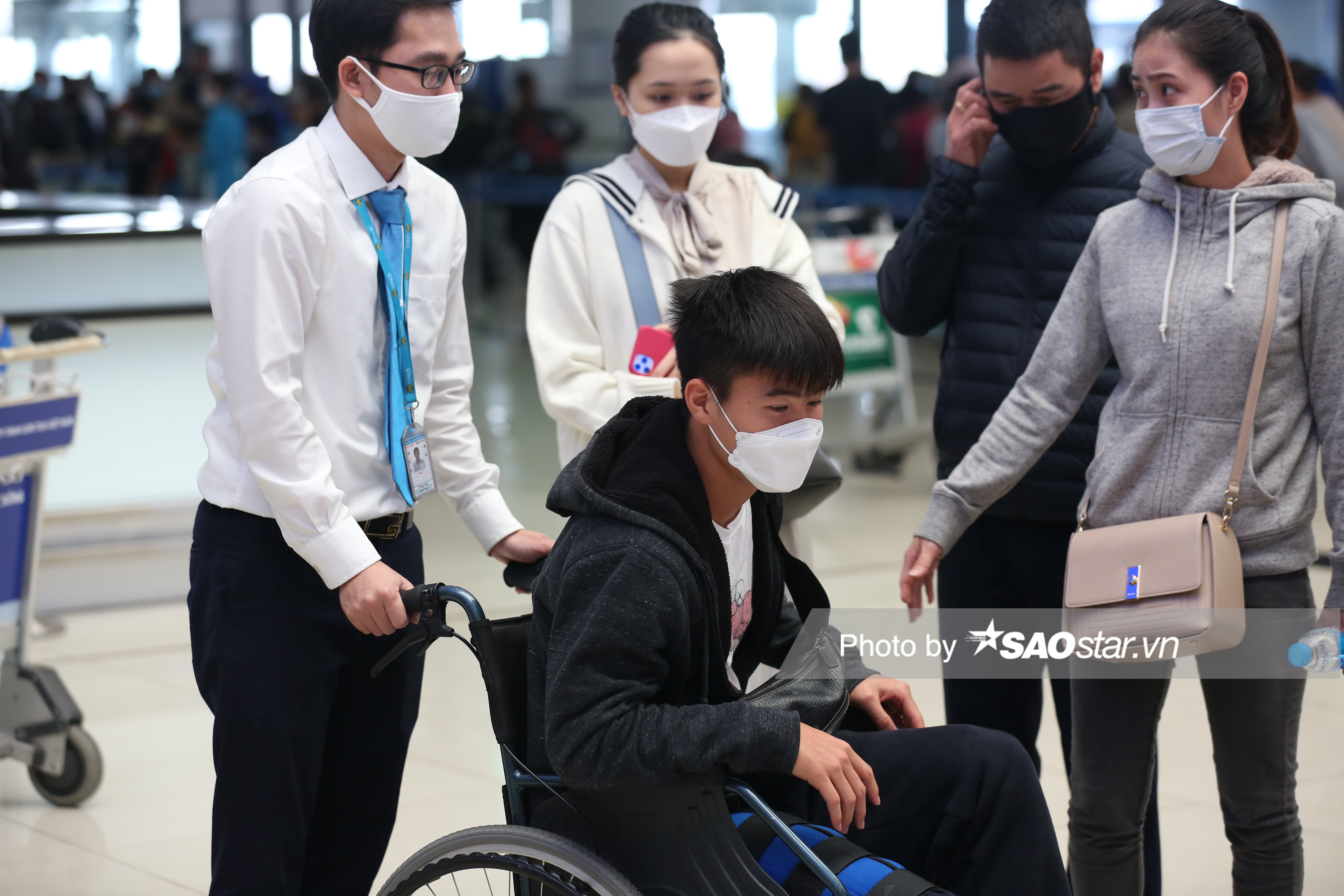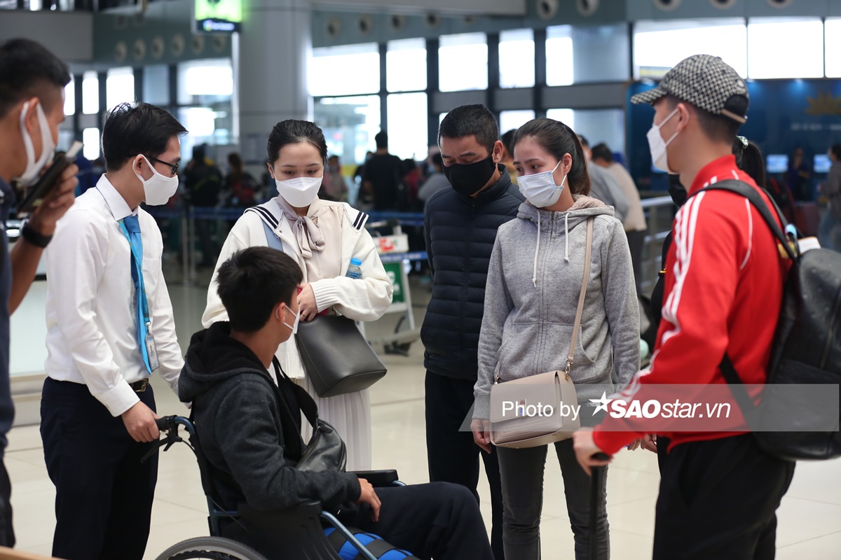 Bố mẹ của Duy Mạnh cũng ra sân bay tiễn con trai đi chữa chấn thương với nỗi buồn không thể nói thành lời. Thậm chí, mẹ Duy Mạnh đã rưng rưng nước mắt vì xa con.