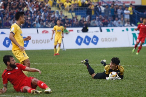 Ngay say đó, tiếp tục là tiền vệ Khắc Ngọc để lại dấu ấn với cú sút xa uy lực và khá hiểm hóc nhưng thủ môn Tuấn Mạnh đã xuất sắc bay người đẩy bóng ra. Ở các phút 27 và 31, Phan Văn Đức có cơ hội đưa SLNA vươn lên dẫn trước nhưng thủ môn Tuấn Mạnh vẫn chơi cực kỳ xuất sắc để cứu cho Khánh Hòa khỏi bàn thua trông thấy. Ngay sau tình huống này, thủ môn Tuấn Mạnh tiếp tục chơi quá tốt cản phá hai cú dứt điểm của Osmar và Olaha.