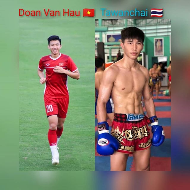 Trong khi đó, “chân dài” của ĐTVN - Đoàn Văn Hâu lại bất ngờ được cộng đồng mạng của xử sở chùa Vàng so sánh khuôn mặt có nhiều nét tương đồng với võ sĩ Tawanchai người Thái Lan.