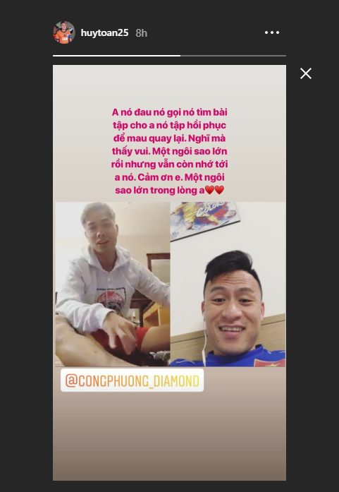 Gạt bỏ nỗi buồn sang một bên, Công Phượng tiếp tục ghi điểm trong mắt các CĐV nhờ hành động vô cùng ý nghĩa với trò cưng Miura. Cụ thể, mới đây tiền vệ Huy Toàn đăng tải trên story instagram hình ảnh chụp lại đoạn video call với Công Phượng kèm nội dung xúc động: