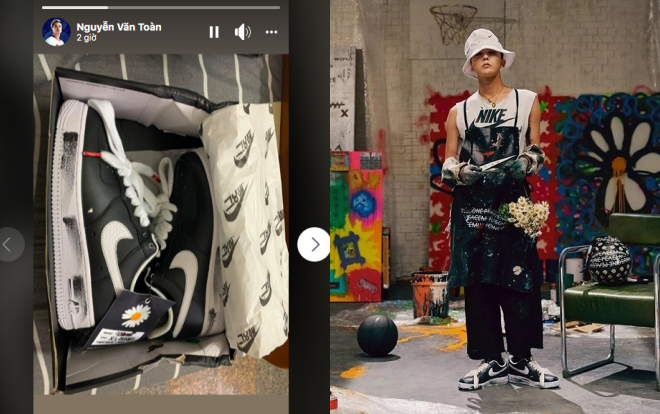 Trưa 14/12, Văn Toàn đăng tải trên story cá nhân bức ảnh “đập hộp” siêu phẩm giày hot nhất nhất trong thời gian qua của “ông hoàng thời trang” G-Dragon collab với NIKE - Nike Air Force 1 Para-Noise.