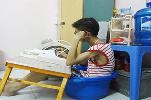 Tuy nhiên, trong “cái khó ló cái khôn”, dù thời tiết như “lò bát quái” nhưng sinh viên đã nghĩ ngay ra “1001 cách” tận dụng “triệt để” những vật dụng đơn giản, rẻ tiền sẵn có trong nhà để chống nóng như thế này đây.