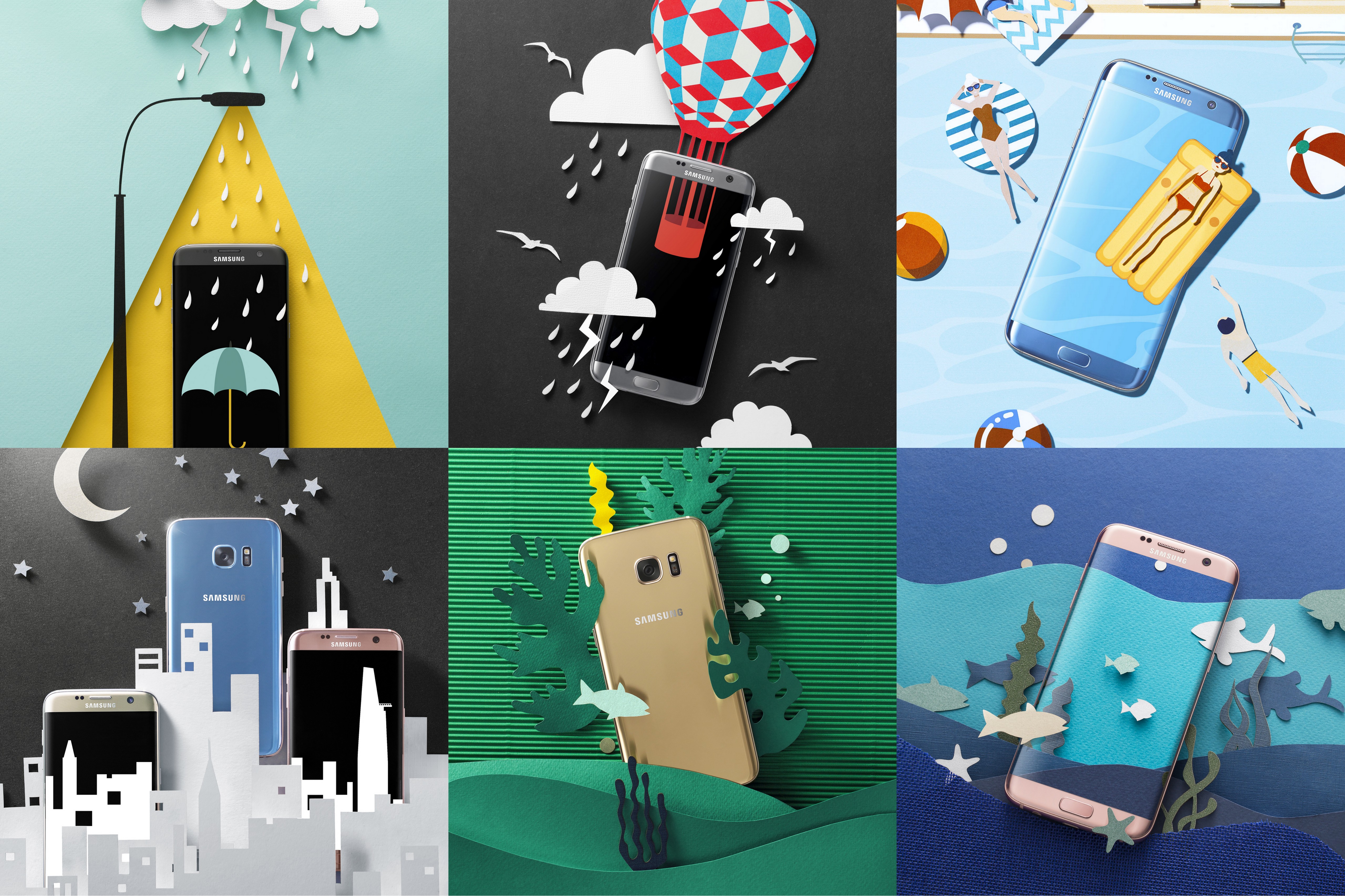 Bộ ảnh xếp giấy lấy cảm hứng từ tính năng và các phiên bản màu trên Galaxy S7 edge đã mang đến cái nhìn khá đầy đủ cho người xem về siêu phẩm đình đám nhất năm của Samsung. Ở đó, chúng ta thấy một phiên bản Xanh Coral nhã nhặn, tinh tế đang đắm mình giữa hồ bơi, khoe trọn khả năng kháng bụi, nước theo chuẩn cao nhất (IP68) của mình. Tại một góc khác, chúng ta thấy các phiên bản Hồng Vàng và Vàng Ánh kim thời thượng trong vai những người trẻ thành thị đang hết mình trong các buổi tiệc tối nhờ camera chụp thiếu sáng và lấy nét siêu ấn tượng. Cùng với đó, phiên bản màu Xám Titanium và Đen Thạch Anh cũng góp phần truyền tải cảm hứng sống bứt phá trong những chuyến đi đầy mạo hiểm của mình.
