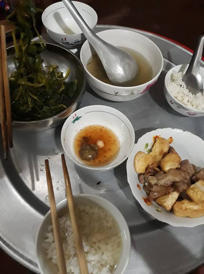“Mâm cơm như này thì theo các bạn có ngon không? Còn mình thì thấy ngon lắm vì đây là cơm mẹ mình nấu đấy. Mình ra Hà Nội cũng hơn 13 năm, ăn cơm thiên hạ nó hay nghẹn lắm. Đến khi về nhà chỉ cần là cơm mẹ nấu thì cái gì mình cũng thấy ngon, các bạn có quan điểm như mình không?”.