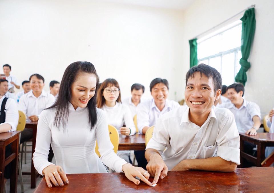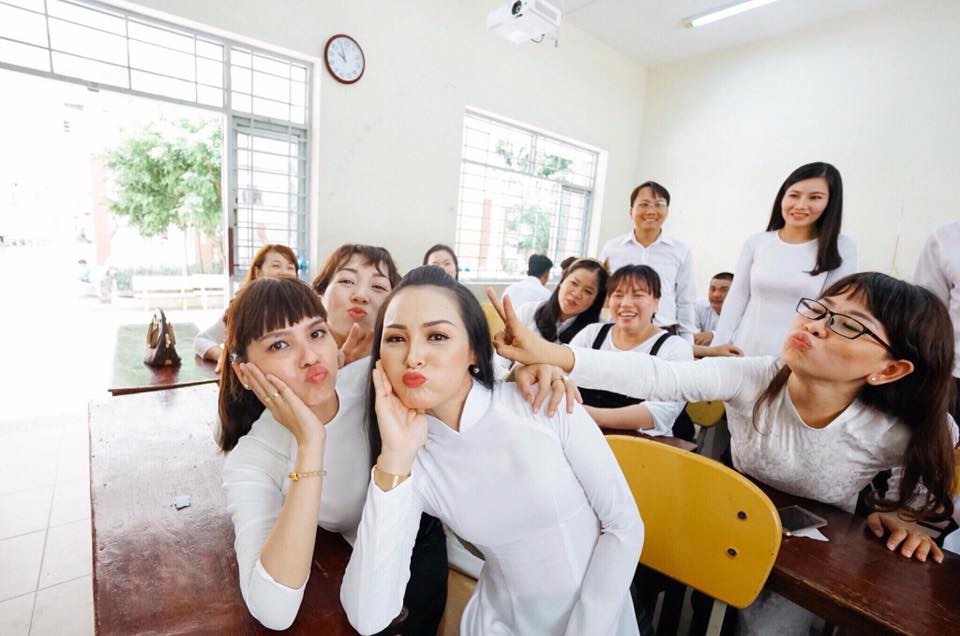 Trần Thị Khả Doanh khoe câu chuyện của lớp “nhà người ta”: “Em mình làm ở nhà hàng hôm nó kể có mấy chú tầm 40 mấy 50 rồi đi hợp lớp có cả thầy nữa rồi cùng nhau ca bài “Bụi Phấn” cùng nhau kể chuyện thời vàng son. Nghe mà ngưỡng mộ”.