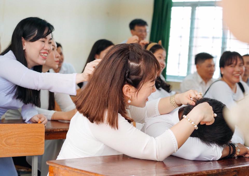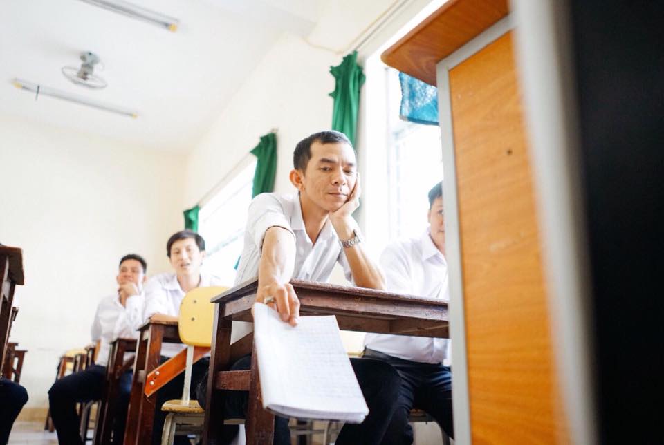 Họ khoác trên mình trang phục học sinh năm nào, ngồi trên chiếc ghế trong lớp học năm đó và cùng học 1 tiết học, cùng nô đùa, cùng ôn lại chuyện xưa.