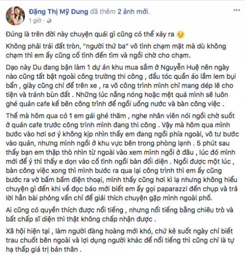 Ở một diễn biến khác, Midu và Thúy Vi bỗng nhiên ”chiếm sóng” mạng xã hội bởi một cảnh ”đụng mặt” nhau một cách gián tiếp của hai kiều nữ trong quán cafe. Sau đó, Midu đã lên tiếng ”tố” Thúy Vi dàn cảnh, rồi Thúy Vi cũng không vừa khi đáp trả lại gay gắt lời tố của đàn chị.