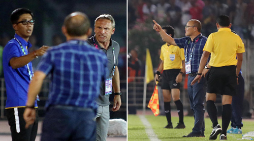 HLV Park Hang-seo không ngại tranh cãi với trọng tài hay HLV Myanmar để bảo vệ cầu thủ của mình. Ảnh: Anh Khoa.