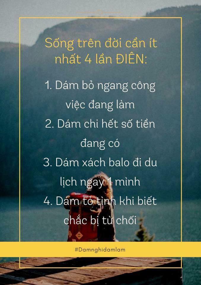 Con người ta vẫn thường tự quăng mình vào những trải nghiệm, lao đầu vào các thử thách của cuộc sống. Để rồi khi thất bại, hai từ “tuổi trẻ” sẽ được mang ra làm lí do đầy tính thuyết phục. Ồ! Rằng mình trẻ mà, trẻ thì có quyền thử, sai thì sửa, hơn nữa lại còn cộng thêm cho hành trang trưởng thành muôn vàn kỉ niệm và bài học đáng giá. Những thứ đó chẳng một trường lớp nào dạy hết, tất cả là do ngoại cảnh mà nên. Khi còn đi học trên ghế nhà trường, cuộc sống xung quanh chỉ là thầy cô. bè bạn và bài tập, chúng ta chẳng mấy có cơ hội được lăn xả ngoài đời để hiểu nhiều hơn. Nhưng một khi nỗi lo cơm áo gạo tiền đè nặng, đó chính là lúc mà người ta bắt đầu cuộc hành trình dài nhưng cũng đáng quý nhất - đó là tuổi trẻ.