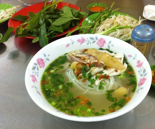 Nổi tiếng vì “chỉ bán một giờ”, quán bún măng vịt nằm sâu trong hẻm Lê Văn Sỹ (quận Tân Bình) có thâm niên hơn 30 năm. Chủ quán mở hàng lúc 15h30, và với số nguyên liệu đã chuẩn bị, lại rất đông khách, nên chỉ sau một giờ là hết, cũng không làm thêm, bán thêm cho ai. Từ quy tắc này của chủ quán, khách muốn ăn phải đến sớm giành bàn. Một tô bún có giá 35.000 đồng, phần gỏi vịt có giá từ 90.000 đồng. Ảnh: Mr True.