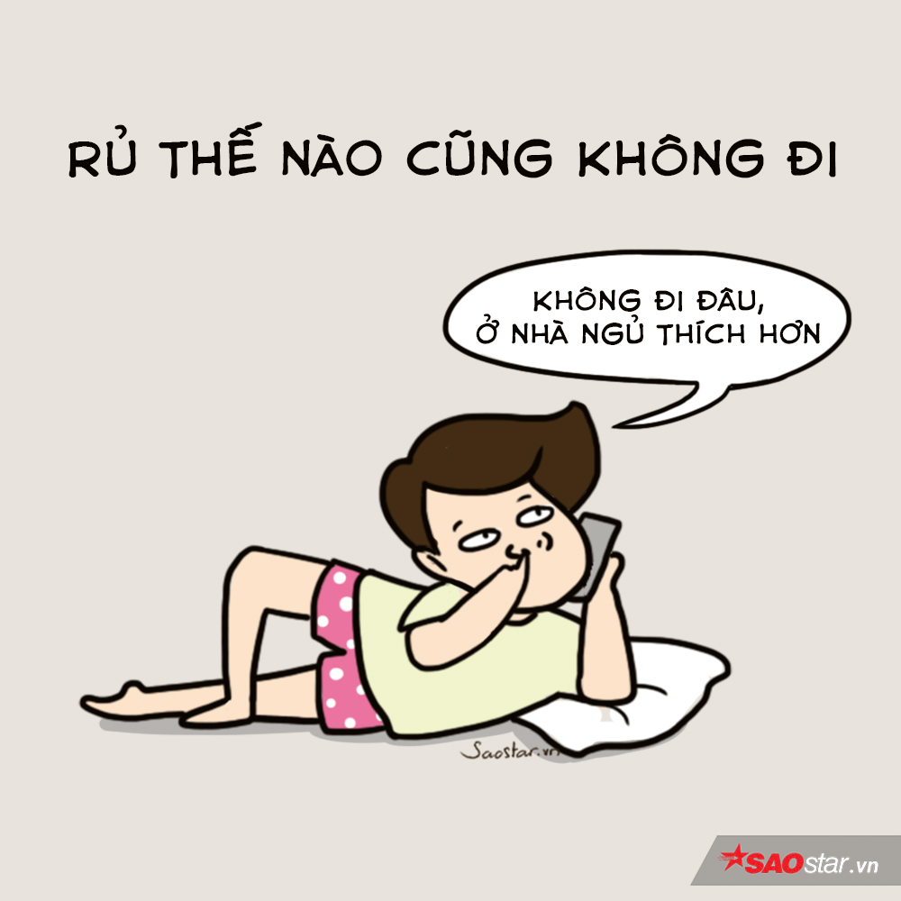 Đứa bạn rủ thế nào cũng không đi chơi Tết là đứa chỉ thích ở nhà, ham ăn ham ngủ, không thể rời xa chăn ấm đệm êm. Ai muốn gặp nó thì chỉ có cách đến nhà nó mà thôi.