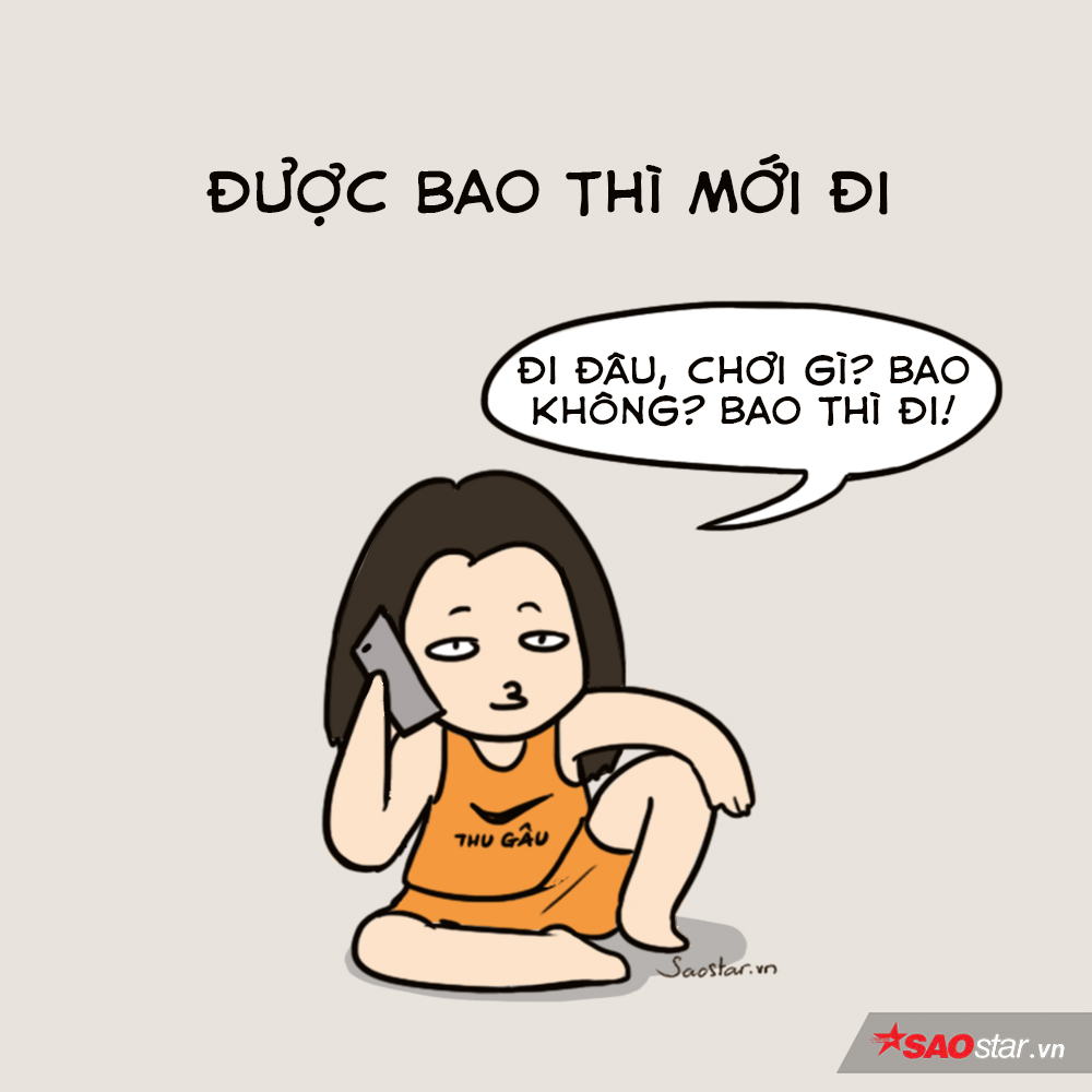 Chắc đứa này có họ hàng với đứa “lúc nào cũng hết tiền” ở trên. Nó không than hết tiền, mà luôn kèm theo điều kiện “được bao thì mới đi” thật rắc rối!