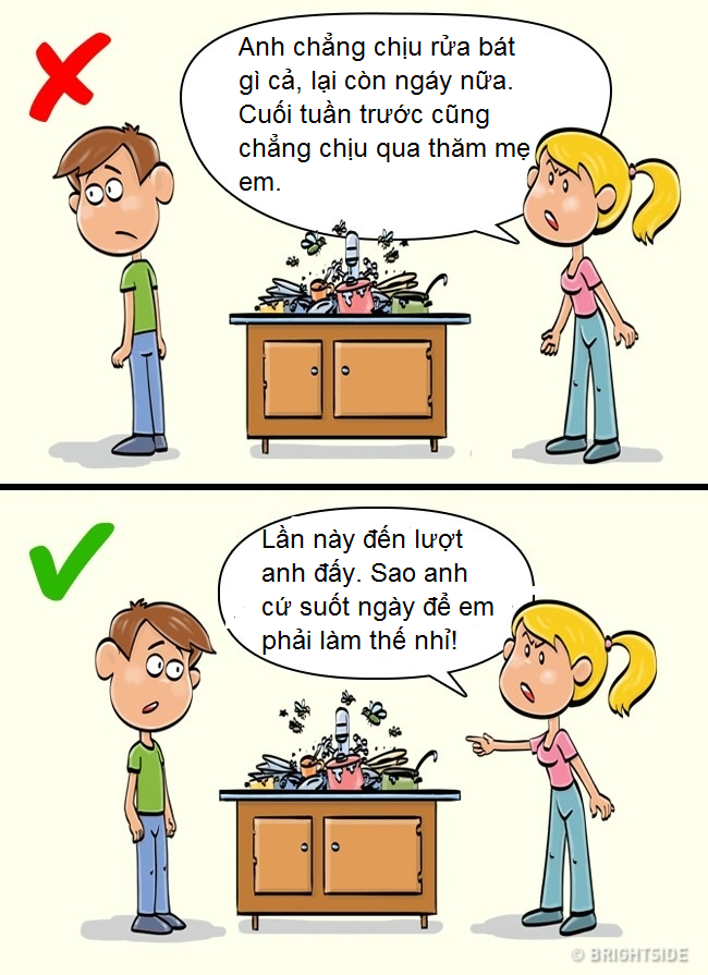 Đừng nhắc nhở đối phương về tất cả các hành vi mà họ đã mắc phải trước đây - đó cũng chính là một cách để biến một vấn đề nhỏ thành một vấn đề cực nghiêm trọng. Ngoài ra, người kia rất có thể người kia sẽ có suy nghĩ: Liệu mình có nên tiếp tục mối quan hệ mà có rất nhiều yêu cầu này không?
