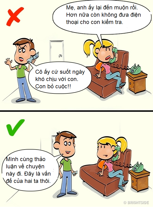 Đây là cuộc chiến của 2 bạn và không liên quan đến người khác. Bằng cách đưa người thân vào cuộc chiến chỉ làm mọi thứ thêm lộn xộn mà thôi. Ngay cả khi mối quan hệ của bạn hài hòa trở lại, các thành viên trong gia đình chắc chắn sẽ nhớ mọi thứ mà bạn tâm sự. Và khi có cơ hội, họ sẽ sử dụng những chi tiết đó chống lại bạn hoặc người kia.