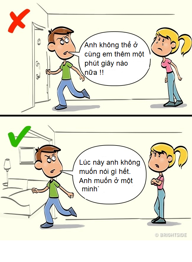 Đơn giản, việc rời khỏi nhà khi đang cãi nhau chỉ chứng tỏ rằng bạn cảm thấy cực kì không thoải mái khi chung một mái nhà với đối phương. Đóng mạnh cửa và lao ra ngoài, để lại các vấn đề chưa được giải quyết - tất cả những điều này sẽ làm cho người ấy suy nghĩ về mức độ trưởng thành của bạn. Tốt hơn hết là đợi cho đến khi cả hai bình tĩnh lại, sau đó thảo luận với nhau một cách rõ ràng, dứt khoát.
