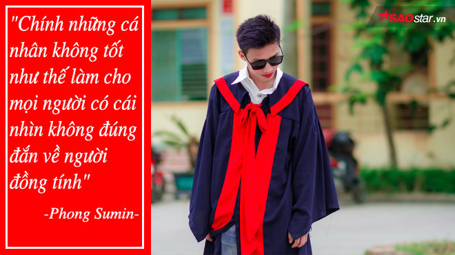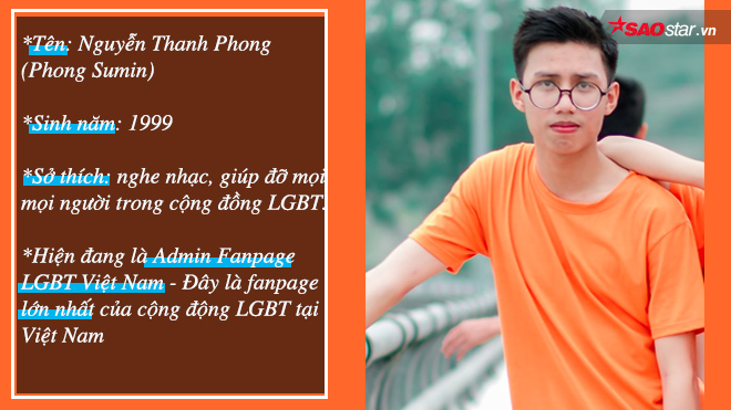 Phong là cậu bạn khá hoạt ngôn và đầy tâm huyết với cộng đồng LGBT. Cậu tâm sư:“Tình cờ fanpage chuyển chọn admin, em vào thi thử, không ngờ mình lại một trong hai bạn được chọn”. Phong cảm thấy vui sướng khi đảm nhiệm vai trò mới và có thể vươn tay rộng hơn để giúp đỡ những người giống như mình đang trải qua những khó khăn, mặc cảm trong cuộc sống. Không chỉ vậy, hơn ai hết cộng LGBT Việt Nam mong muốn xã hội có cái nhìn đúng đắn hơn về người đồng tính, vì ai sinh ra cũng có mưu cầu hạnh phúc và hạnh phúc nhất là được sống thật với chính mình. 9X tâm sự thêm: “Bên cạnh những bạn đồng tính mang đến cái nhìn tích cực từ xã hội, thì còn rất nhiều kẻ lợi dụng hai chữ 'đồng tính' để gây sự chú ý, làm những trò lố lăng gây ảnh hưởng xấu đến cộng đồng rất nhiều”. Đây chắc hẳn không chỉ là điều trăn trở của Phong mà còn rất nhiều bạn khác đang hoạt động trong cộng đồng. Phong nói: “Chính những cá nhân không tốt như thế làm cho mọi người có cái nhìn không đúng đắn về người đồng tính”