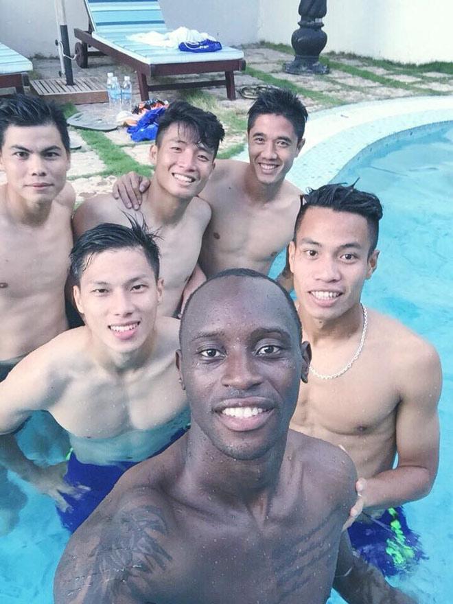 Dù “nhỏ con” hơn các đồng đội nhưng hình thể rắn chắc lấp ló cơ bụng của Công Phượng vẫn dư sức hút.