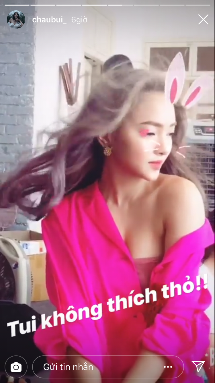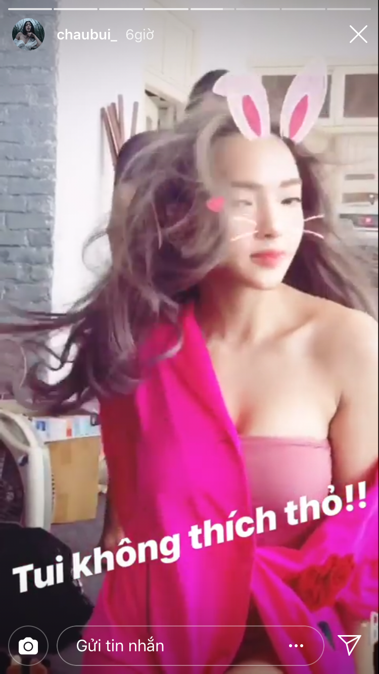 Trên Story của mình, Châu Bùi cũng thường xuyên đăng tải những clip ngắn với màu tóc mới. Có lẽ, cô nàng rất mê sự thay đổi này.