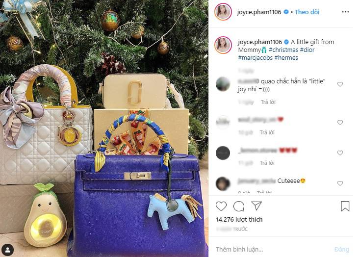Cuộc sống sang chảnh của ái nữ nhà đại gia Minh Nhựa luôn là đề tài thu hút sự chú ý của cư dân mạng. Mới đây nhất, Joyce Phạm có khoe việc nhận được món quà Giáng sinh từ mẹ đẻ khiến dân tình vô cùng choáng ngợp.