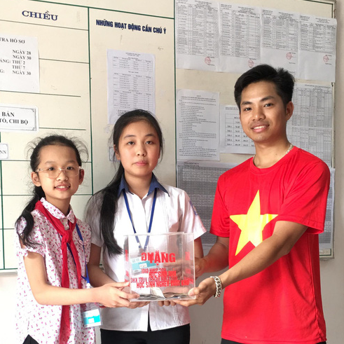 Những phần quà đầu tiên được Tuấn trao tận tay các em học sinh khó khăn ở trường THCS Văn Lang - Phú Thọ (Ảnh NVCC)