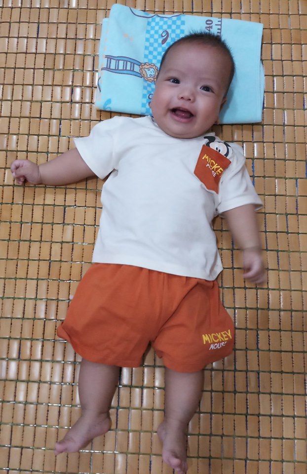 Mỗi khi cười, cậu bé khoe má lúm xinh xắn, đáng yêu.